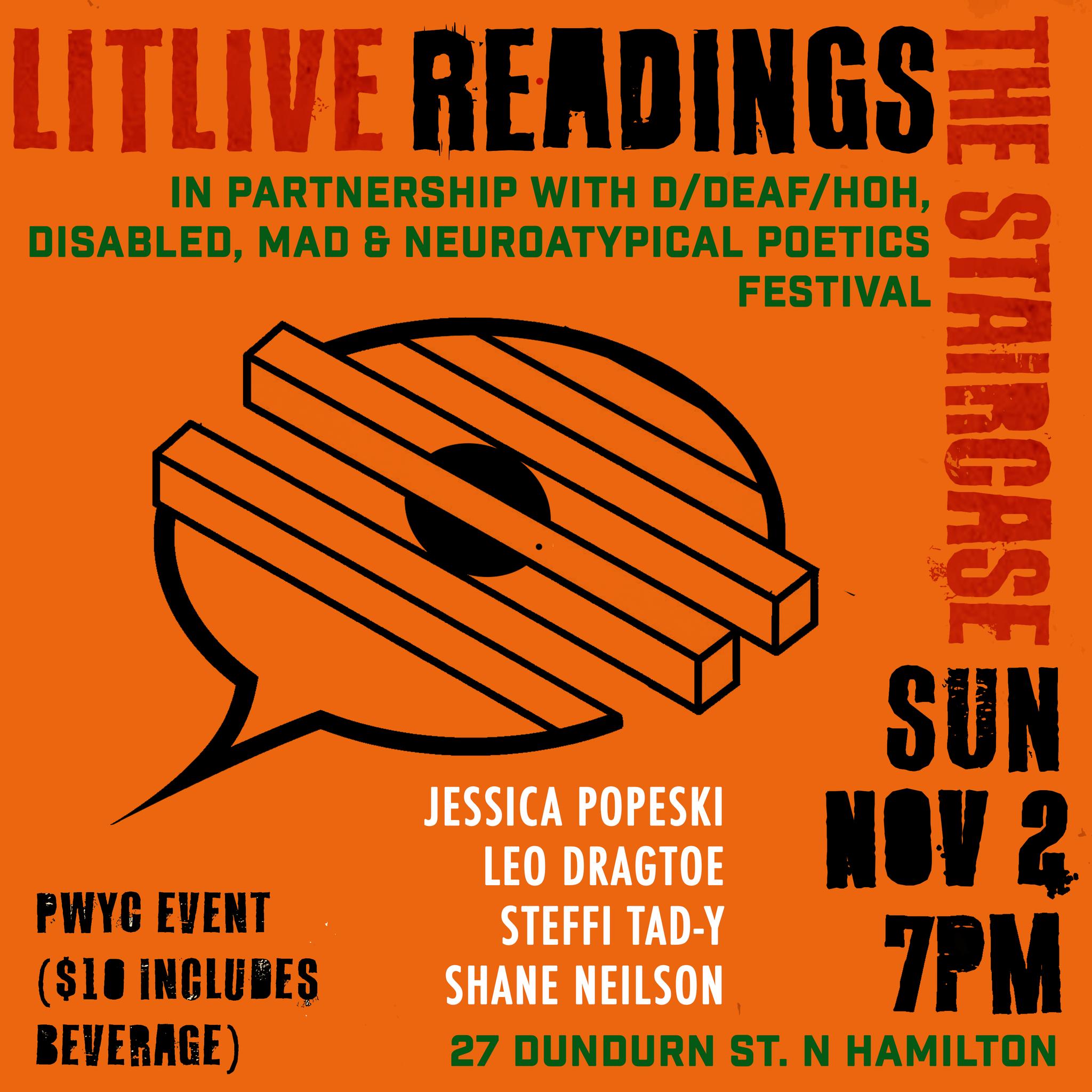 Sunday Nov 2 @ 7:00pm Catch Shane Neilson, author WHAT TO FEEL, HOW TO FEEL, at LitLive Readings in partnership with D/Deaf/HOH, Disabled, Mad & neurotypical Poetrics