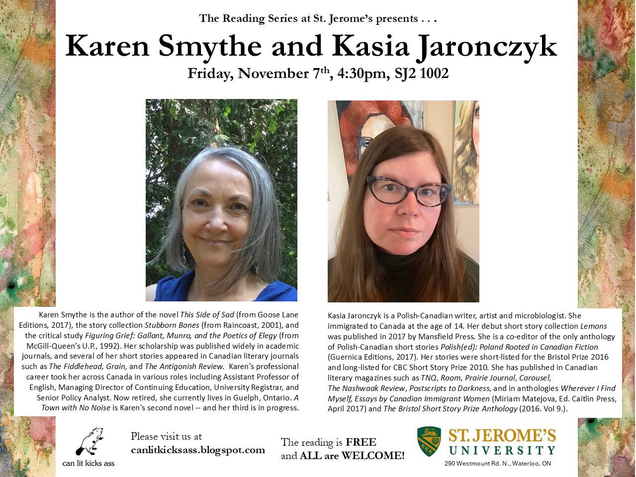 Friday Nov 7 @ 4:30 pm Catch Kasia Jaronczyk, author of VOICES IN THE AIR, and Karen Smythe, author of A TOWN WITH NO NOISE, at the