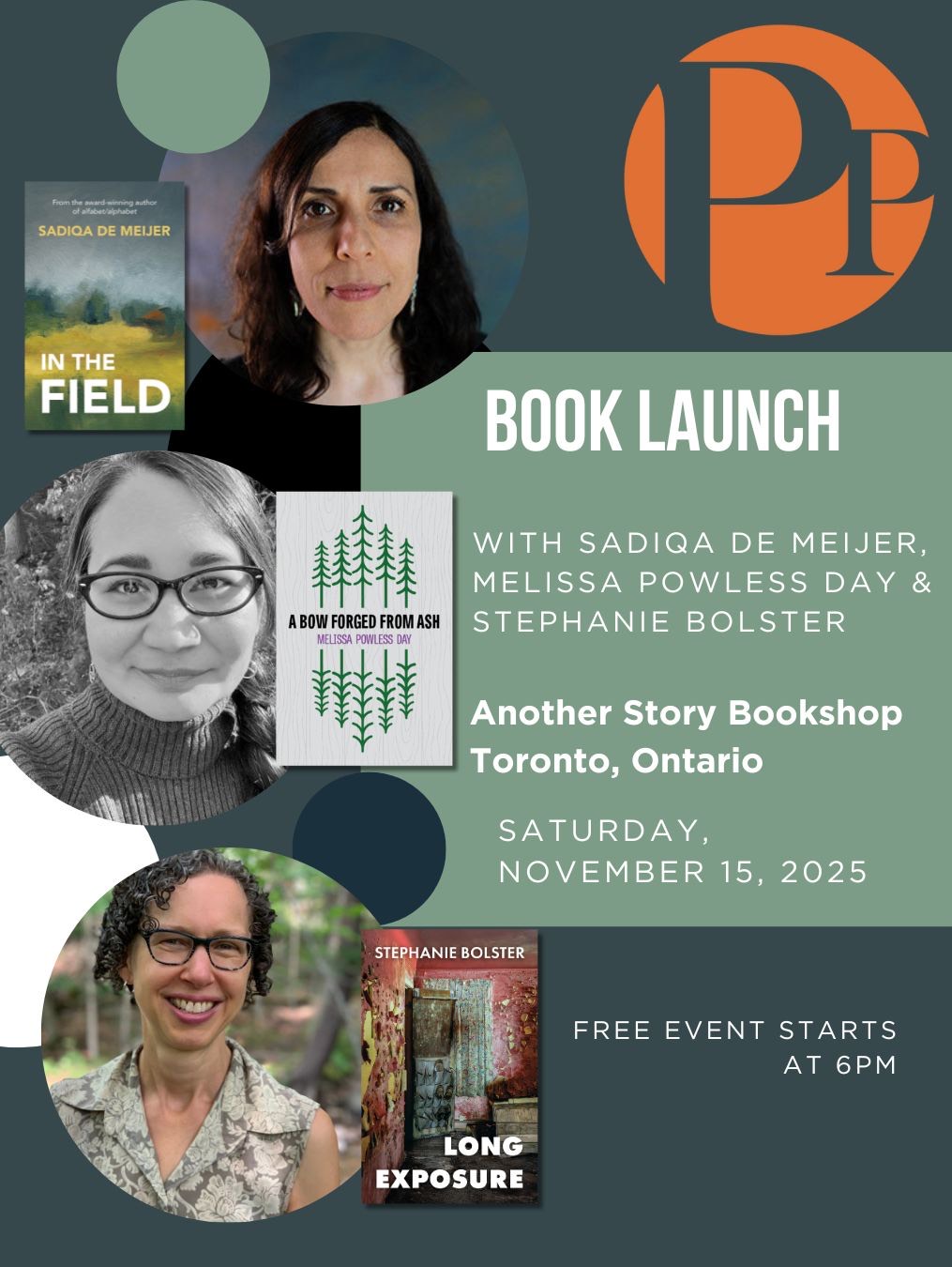 Saturday Nov 15 @ 6:00pm Come out to celebrate our fall season with us! Catch Sadiqa de Meijer, author of IN THE FIELD, Stephanie Bolster,