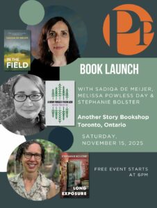 Come out to celebrate our fall season with us! Catch Sadiqa de Meijer, author of IN THE FIELD, Stephanie Bolster, author of LONG EXPOSURE, and Melissa Powless Day, author of A BOW FORGED FROM ASH, at Another Story Bookshop for the Palimpsest Fall Launch! Books will be available for purchase.