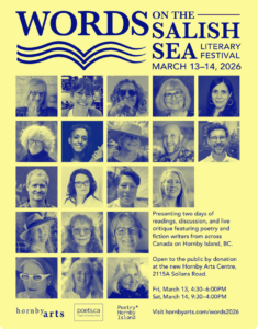 Everyone is welcome. Masking is always appreciated. Click here for more information: Words on the Salish Sea . This event is taking place at Hornby Island, 2115A Sollans Road, Salish BC. We hope to see you there!